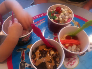 We all got a nice reward for our hard work--and had FroYo for dinner (although G and I both had snacks later on) :-) (I had done a lot of house cleaning on Saturday, so all that was left for Sunday was laundry)